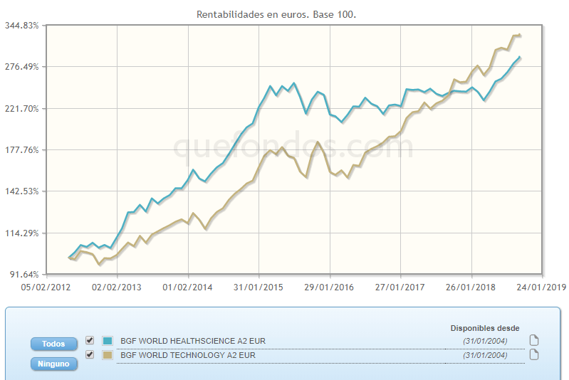 Por lo tanto, el mismo efecto lo podemos encontrar en fondos de esos sectores. Un buen ejemplo lo podemos ver en dos fondos de la misma firma.