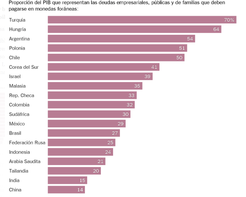 Se espera que Latinoamérica crezca un 1,2% este año, que muestra un decrecimiento respecto al 2017, basado en diferentes factores. En primer lugar, Argentina tiene una crisis de corrupción y una crisis financiera que está solventándose con deuda, con el plan de ayuda financiera del FMI por valor de 50.000 millones de dólares. Estas dos circunstancias sumadas a las condiciones financieras mundiales, más estrictas, hacen valorar la situación de incertidumbre que presenta el país. Una de las medidas adoptadas por el Banco Central es la venta de reservas para intentar reducir la depreciación del peso.