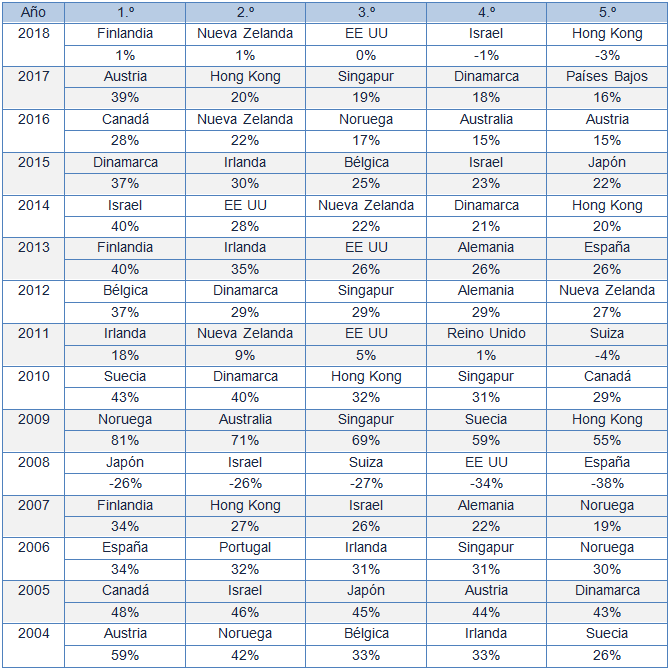Figura 2: Los 5 mercados bursátiles más rentables cada año